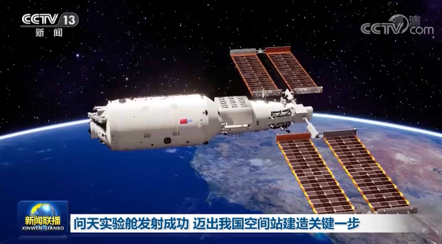 央视网消息(新闻联播):今天(7月24日)下午,长征五号B遥三运载火箭成功将问天实验舱送入太空,中国空间站在轨组装建造迈出了承前启后的关键一步。