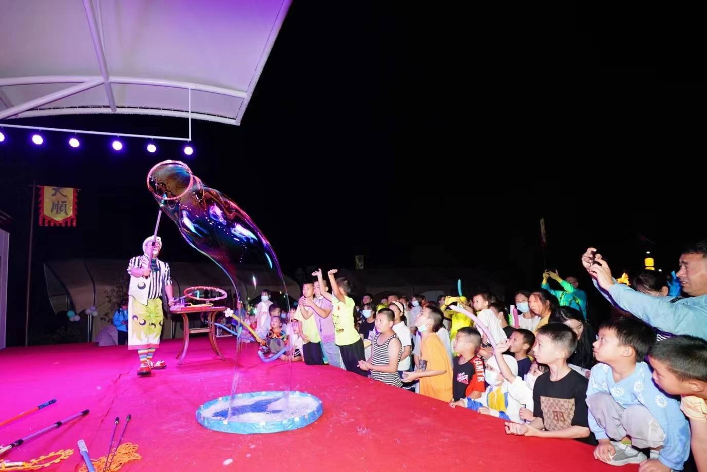 花式调酒、炫酷乐队、泡泡小丑,多重精彩节目轮番上演,绚丽灯光、荧光派对、篝火晚会气氛热烈,点燃魅力商南夜空,游客感受着一波又一波浓烈音浪,现场呐喊声响彻云端夜空,“美食篝火狂欢夜” 开启最嗨盛夏夜生活。