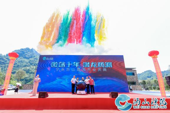 最后,部分出席典礼的相关领导和嘉宾上台,共同为“沩山漂流”开业启动仪式,开业典礼圆满礼成。