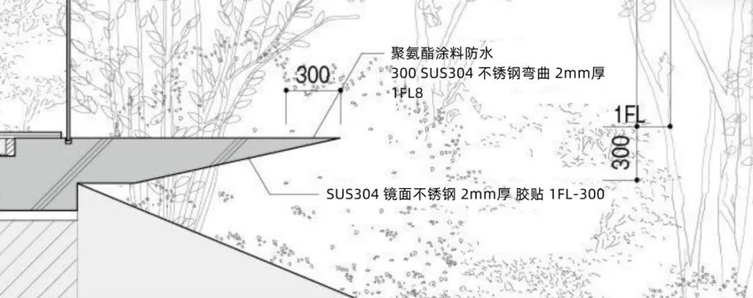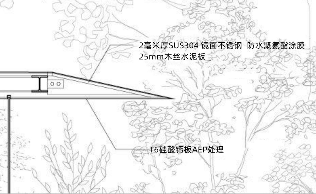 在屋顶和地坪的节点设计上,选用了尖角的处理手法,这样从透视的角度看过去,就是很轻薄的屋顶和悬浮式的地坪。