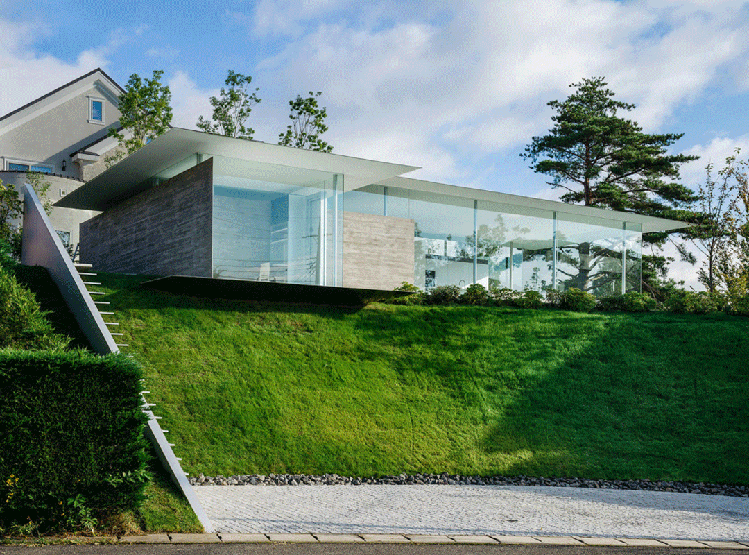 住宅位于日本栃木县那须,K-VILLA 是建筑事务所去年完成的一个作品,整个住宅建筑像是一个轻盈、自由可漂浮的体块悬浮于草坪之上。