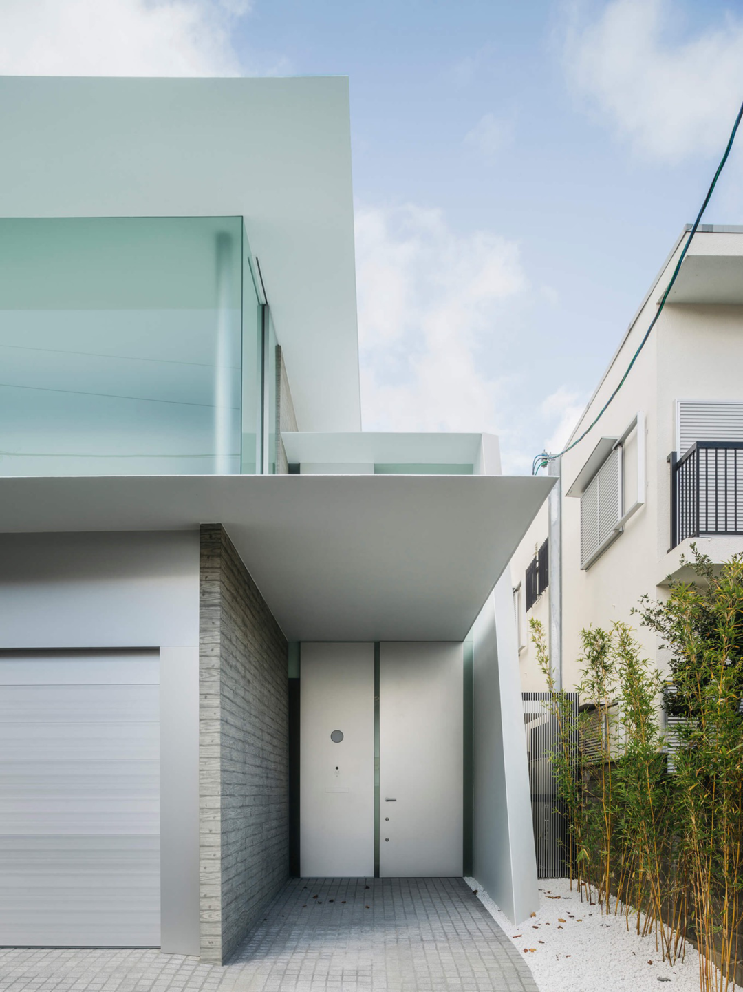 两侧延申高耸的混凝土墙面靠近路面,保护了住宅隐私,还能在极端的暴风暴雨天气中保护整个建筑主体。