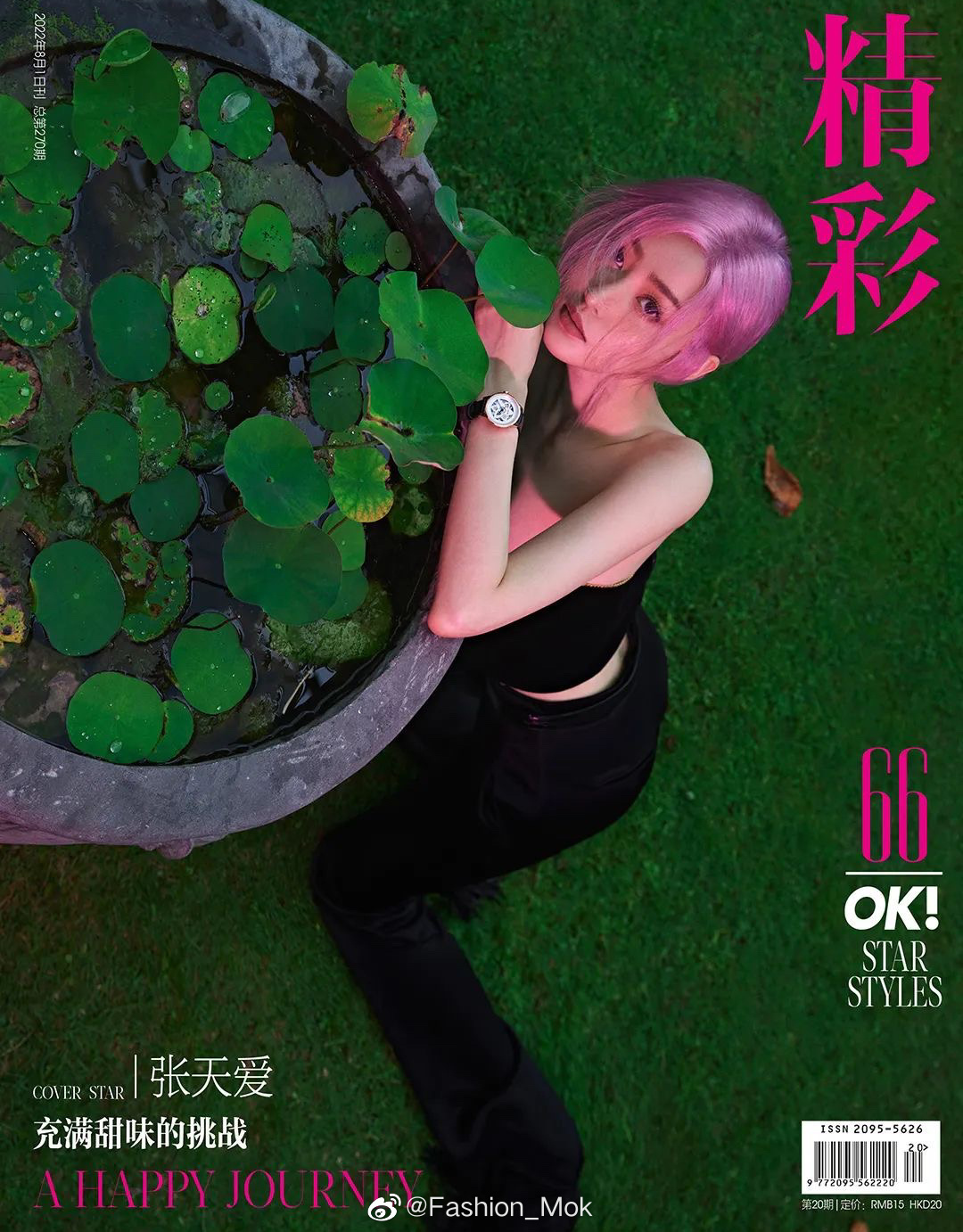 张天爱登《OK! 精彩》八月刊封面,一头粉紫发色亮了