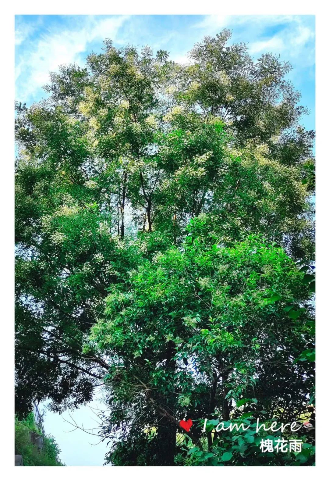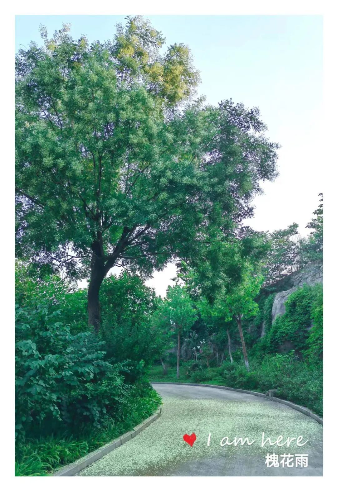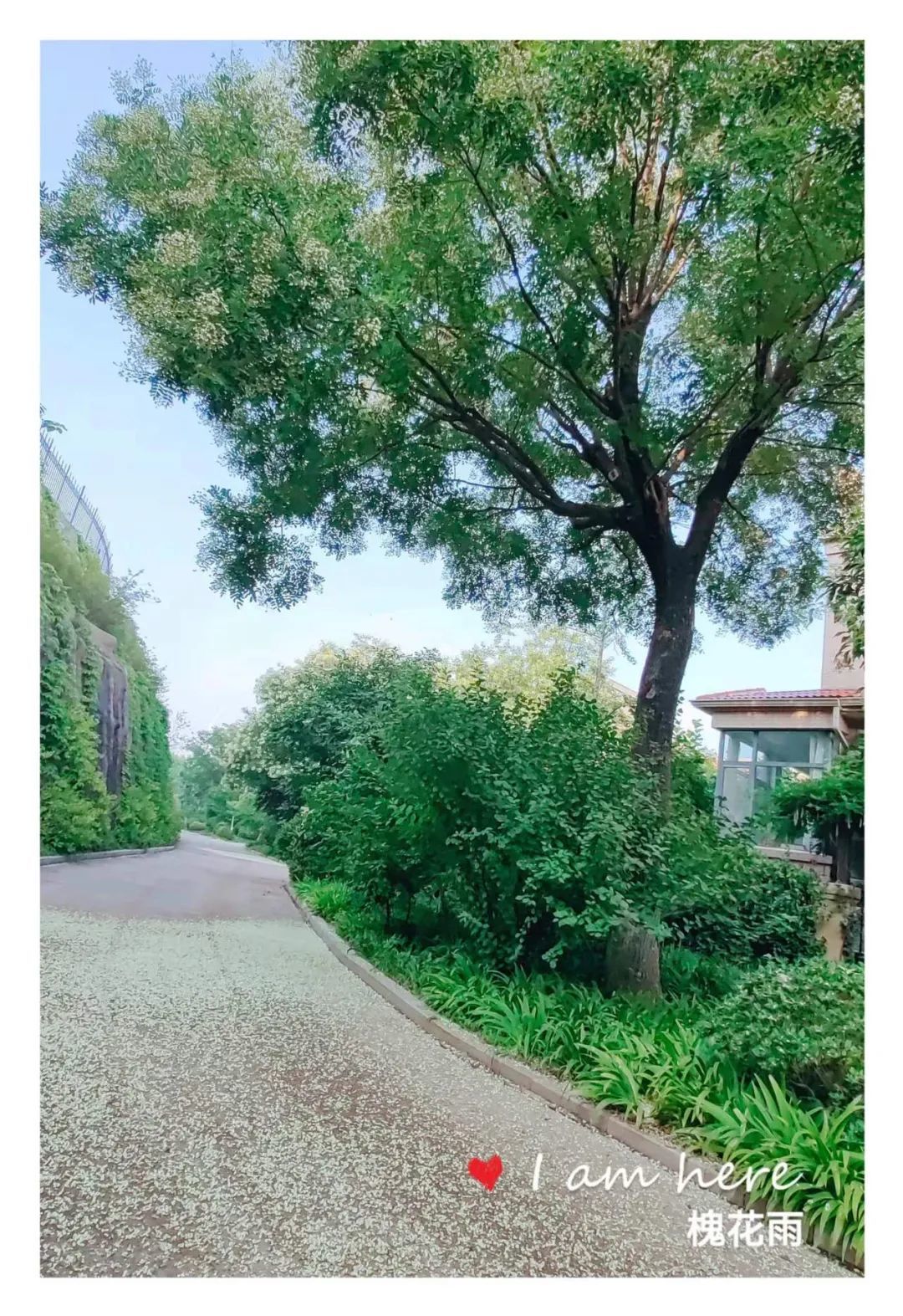 又过几日,槐花雨就真真地下起来了!微风吹过,大批的槐花如同精灵般簌簌落下,唰唰作响,那形态那声响极像是雨滴落下。落在地上,落在行人的身上,落在停放在树下的车上,落在浓密的绿植上,落在池塘的水面上。一片乳白,微微泛黄,整个小区变成了一卷散着槐花香味的水墨画。徜徉在卷中,心是醉的。醉于满目的清爽,醉于怡人的清香。