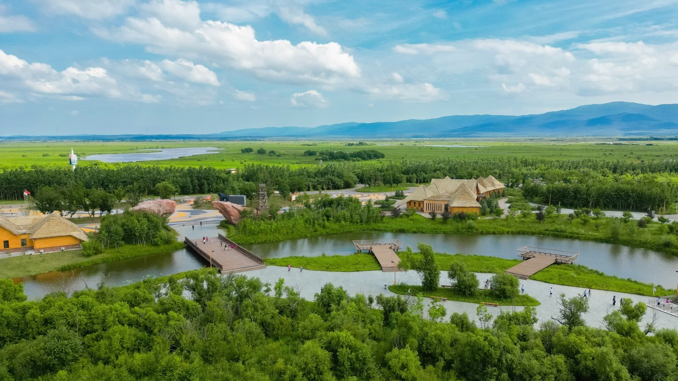 三江 口湿地公园是 三江 平原东端受人为干扰较小的湿地生态系统典型代表,园区内泡沼遍布,河流纵横,自然植被茂盛,保持着最原始的自然状态。