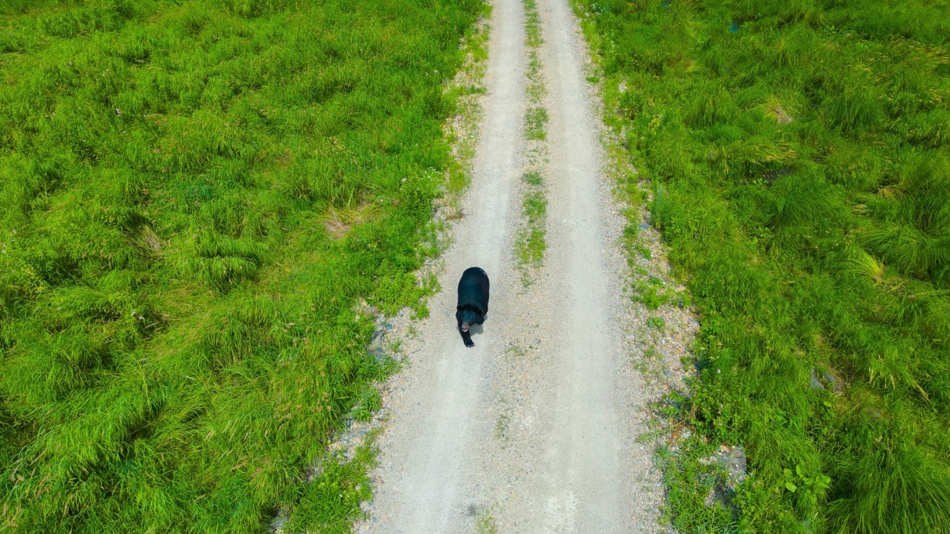 乘坐游览专车一路可以欣赏憨态可掬的黑熊们。这里真的很原生态,黑熊们经常坐在车道上,看着我们的大巴行驶过来,它们便慢悠悠地回到草丛中。