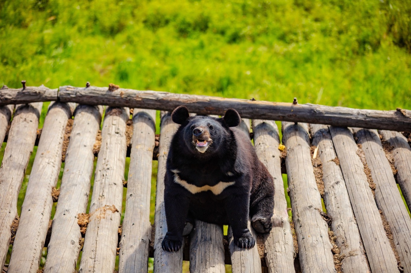 夏日,有些黑熊喜欢挂在树杈上睡觉,姿态相当萌。遇到观景平台,不要忘记买一桶食物,可近距离投喂黑熊哦!