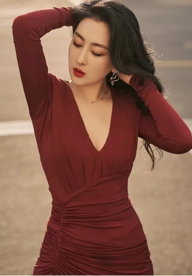 在拍摄这组性感的时尚大片时,只见马苏身着一件红色的贴身长裙,衣服的贴合性将马苏凹凸有致的身材展现得淋漓尽致,盈盈一握的纤细腰肢给人强烈的视觉冲击力,红色长裙V字领的设计更是将马苏的事业线将露未露,灵动而魅惑的眼神好似透过镜头般直击人心。