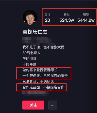 在探店界有这么一位做真实探店的百万网红,“真探唐仁杰”短短半年来探店大约在180家,以视频中只讲真话不讲假话,更因为自己本身曾经是五星级大酒店的西餐厨师长,对菜的色香味和价格上真实接地气的评价,圈粉五百四十多万,一时间成为不少人出门旅游选地方吃饭的风向标。
