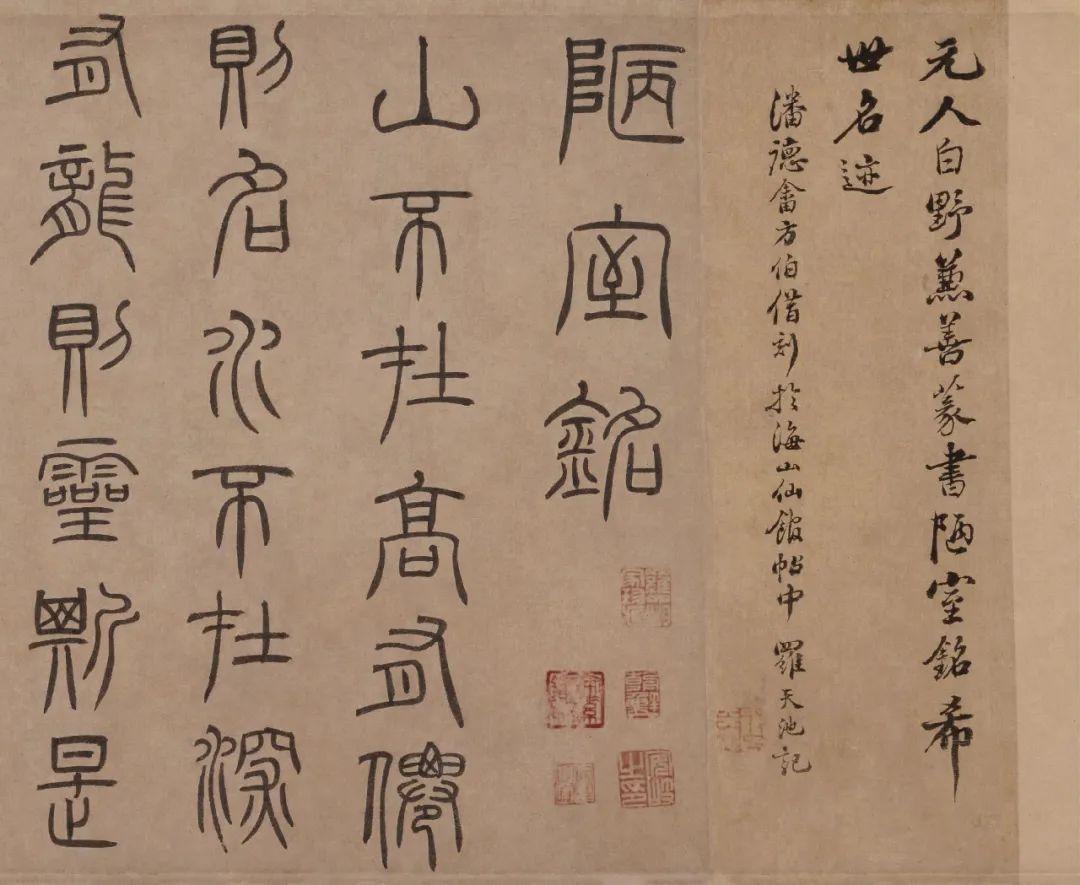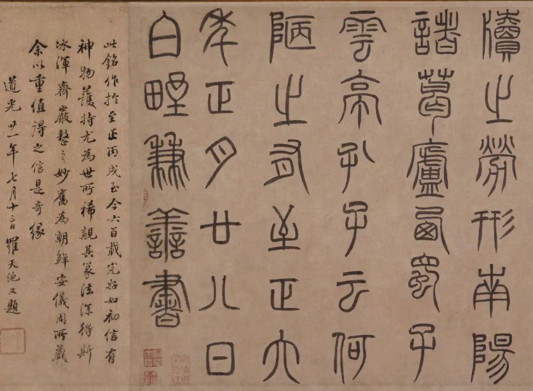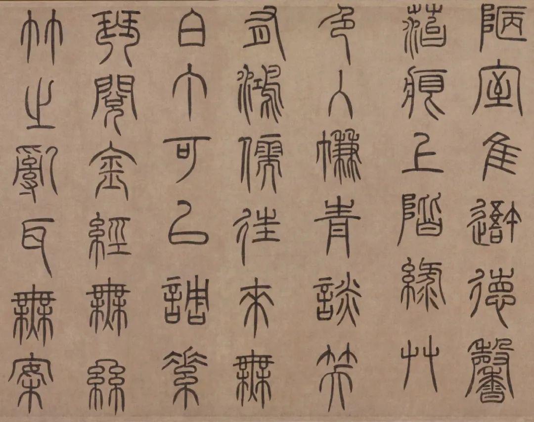 泰不华篆书作品欣赏《陋室铭》卷,纸本,纵36.9cm,横113.5cm。作者时年43岁,其书法兼善篆、隶、楷。篆法师宋徐铉,下笔多用方折,行笔圆活遒劲,结构疏朗工稳,末笔多作尖锋,即“悬针”笔法。此为迄今所见泰不华唯一的篆书真迹。作为一个少数民族文人,能写如此齐整秀逸的汉字古体,实属难能可贵,此卷曾刻入《海山仙馆帖》。