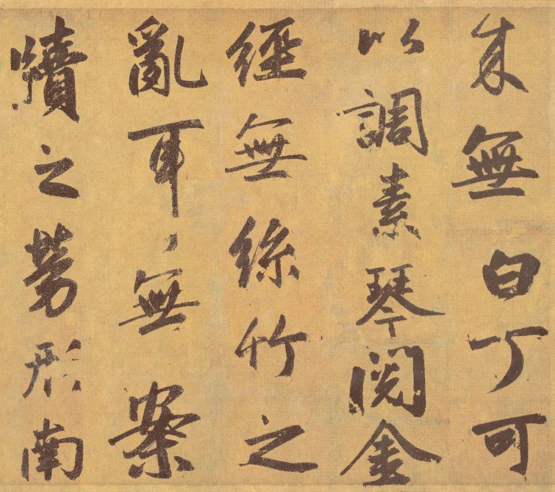 董其昌《陋室铭》,用笔精到,行中带草,能始终保持正锋,作品中很少有偃笔、拙滞之笔;用墨也非常讲究,枯湿浓淡,尽得其妙;风格萧散自然,古雅平和,或与他终日性情和易,参悟禅理有关。