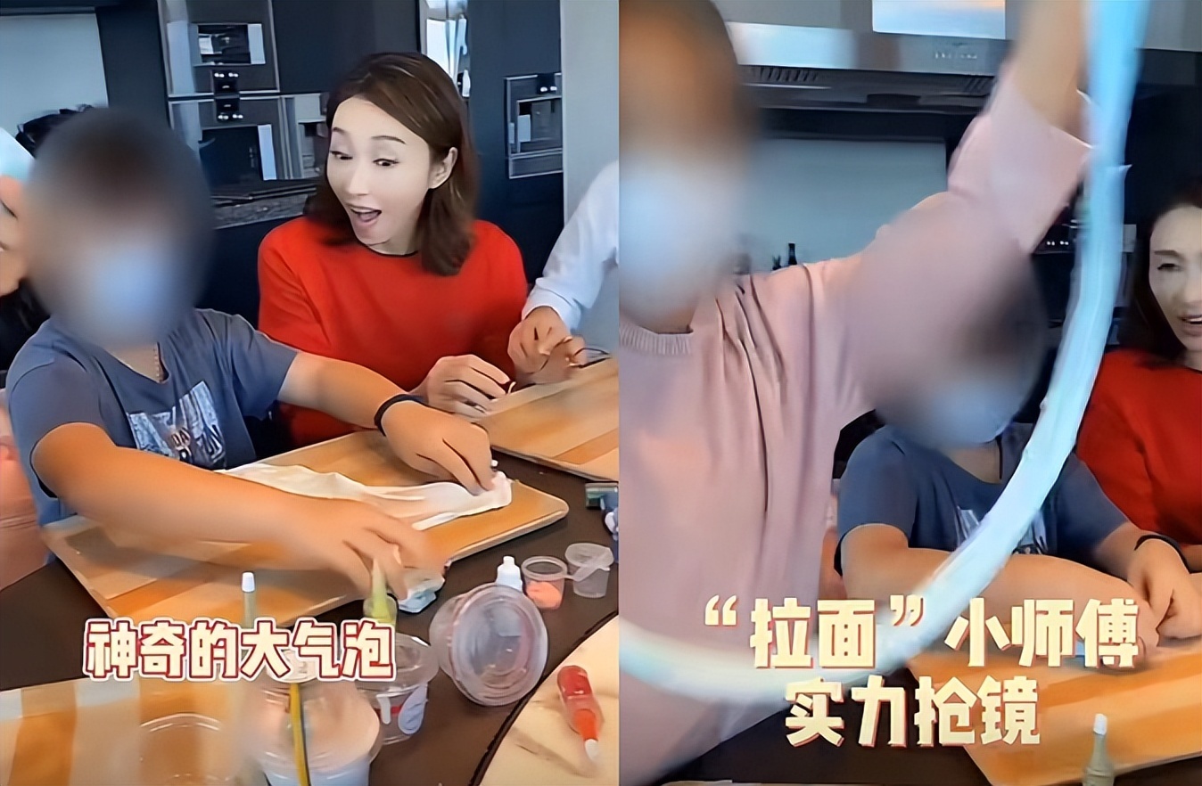 黎姿的女儿们也十分活泼,在做手工时各种小动作不断,变身“拉面师父”在镜头面前实力搞怪,或大力将史莱姆往前一甩弄出神奇的大气泡,将捏史莱姆前的无聊的准备工作也变得有趣起来。而黎姿也沉浸在做手工中,耐心地手把手教小朋友怎么操作,甚至多次表示手工材料很漂亮。