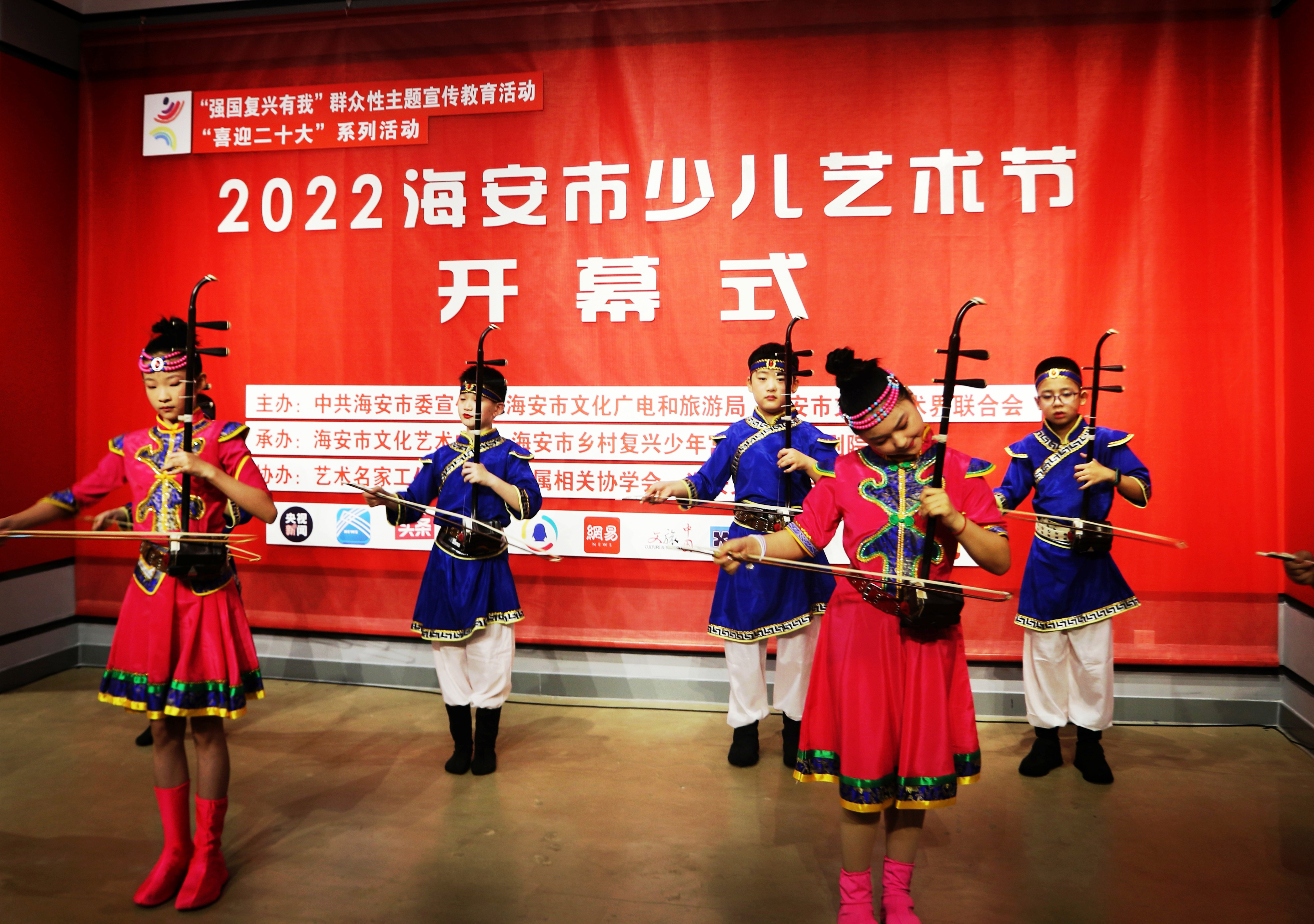 海安市文广旅局党组书记、局长华志刚发布2022海安市少儿艺术节系列活动项目,拉开了开幕式的序幕。二胡《赛马》、舞蹈串烧、小组唱《把未来点亮》等精彩的少儿文艺节目轮番上阵,展示全市少年儿童艺术风采,展现了海安少年儿童在党的关怀下幸福成长的美好生活。