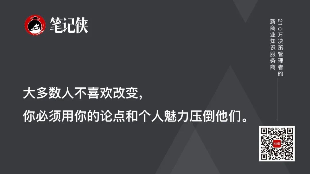 大多数人不喜欢改变,你必须用你的论点和个人魅力压倒他们。