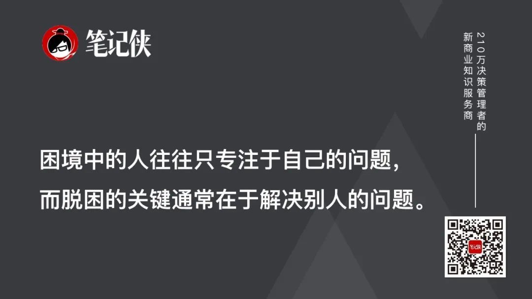 处于困境中的人往往只专注于他们自己的问题,而使自己脱困的关键通常在于解决别人的问题。