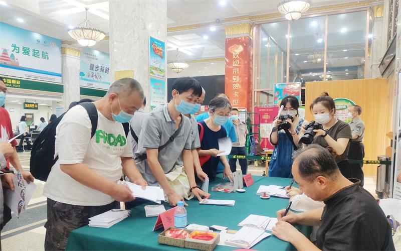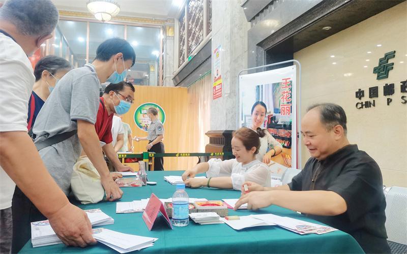7月27日上午,西安钟楼邮政支局一楼大厅内人头攒动,众多社火脸谱和邮资爱好者已经排起长队,手拿社火脸谱特色信封等待作者签名。据了解,中国邮政集团有限公司西安市分公司推出4枚“秦腔-马勺系列”彩色邮资机宣传戳,特邀张星等社火脸谱绘制技艺代表性传承人创作,此次共配套限量发行2000份社火脸谱信封。