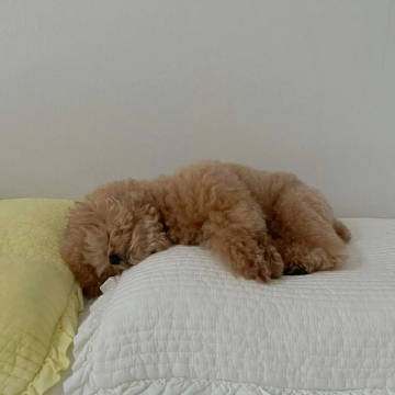 一只贵宾犬正倒在沙发上睡觉。