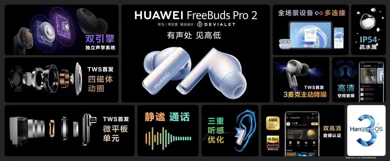 当然,延续了三麦克+骨传导麦克风组合,支持“静谧通话”新体验;作为全球首款3麦克主动降噪TWS耳机,华为FreeBuds Pro 2最大可实现47dB降噪深度。价格是1299元起。
