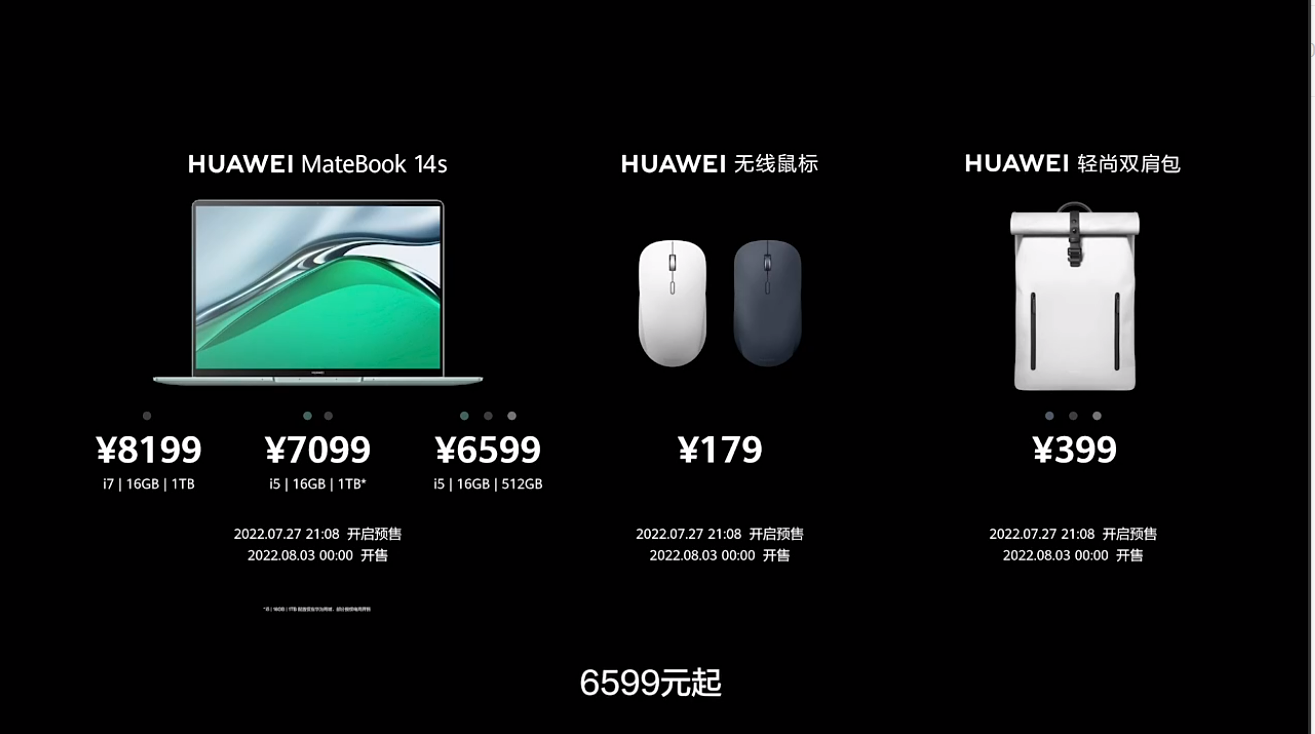 另一款笔记本是华为新款MateBook 14s,定位是轻薄本,轻约1.43kg ,厚约16.7mm ,搭载第12代酷睿标压处理器,搭载的是2.5K触控屏,90Hz高刷新率,平均ΔE<1的高色准 ,并通过莱茵专业级色准认证。价格是6599元起。