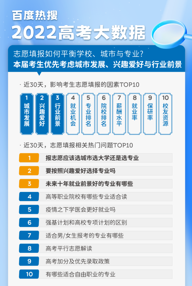 最近,百度搜索和中国教育在线,一起推出了《2022高考搜索大数据》。