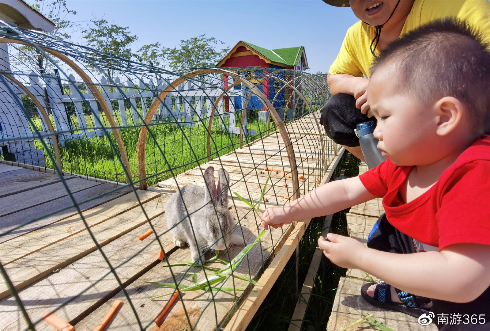 牧场还有网红童话兔子小屋,里面住着小灰兔、小白兔、小花兔三家,只要听到游客的脚步声,兔子就活蹦乱跳地从房子里跑出来,用可爱的眼睛看着游客,目的只有一个,“快来喂我呀!”兔子的可爱让小朋友们根本就挪不开脚步。