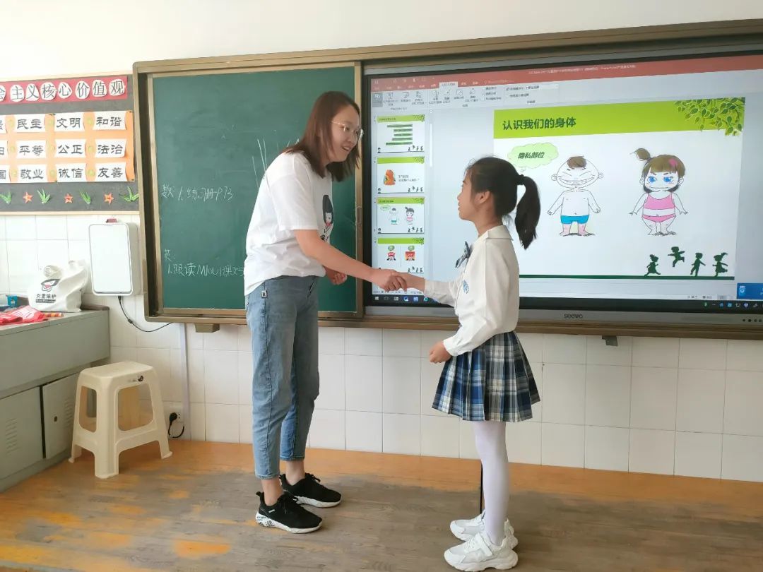 2022年6月1日、2日、7日、9日、21日、23日、24日、28日、30日,女童保护基金个人志愿者讲师张月芹走进山东省济宁市汶上县第一实验小学,为754名孩子讲授了14堂“爱护我们的身体”儿童防性侵课程,并发放儿童防性侵手册儿童版754本和家长版23本。共同参与活动的志愿者还有王晓蝶。
