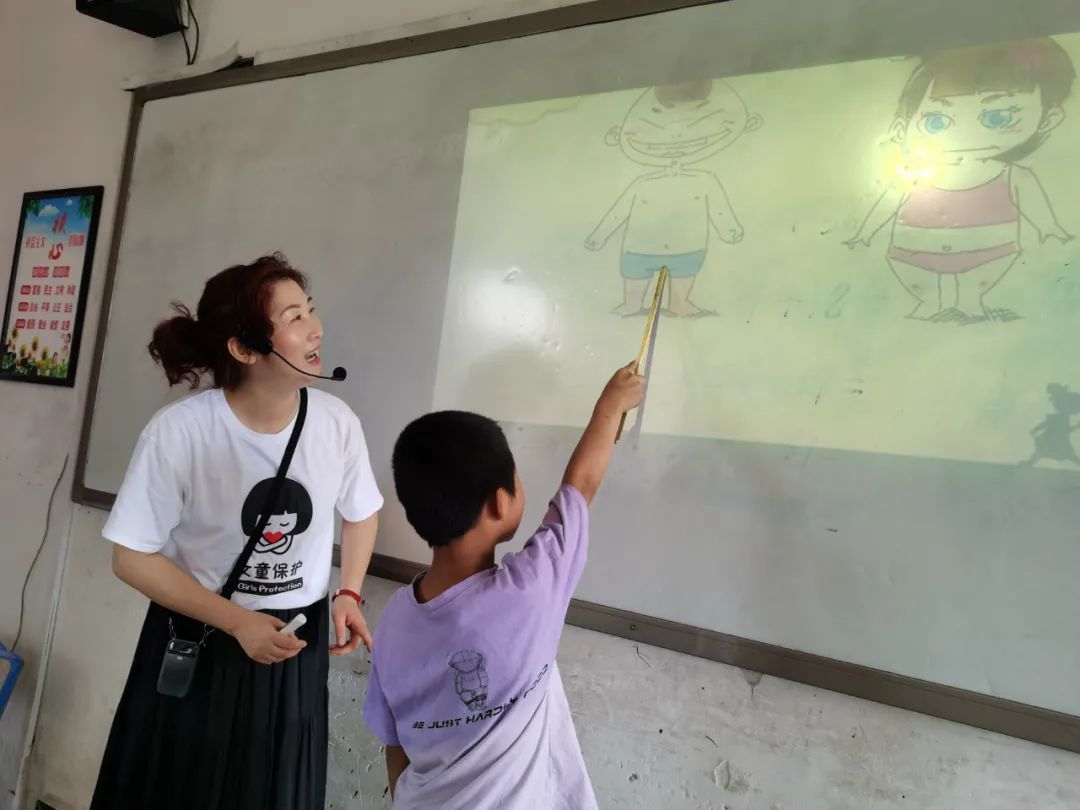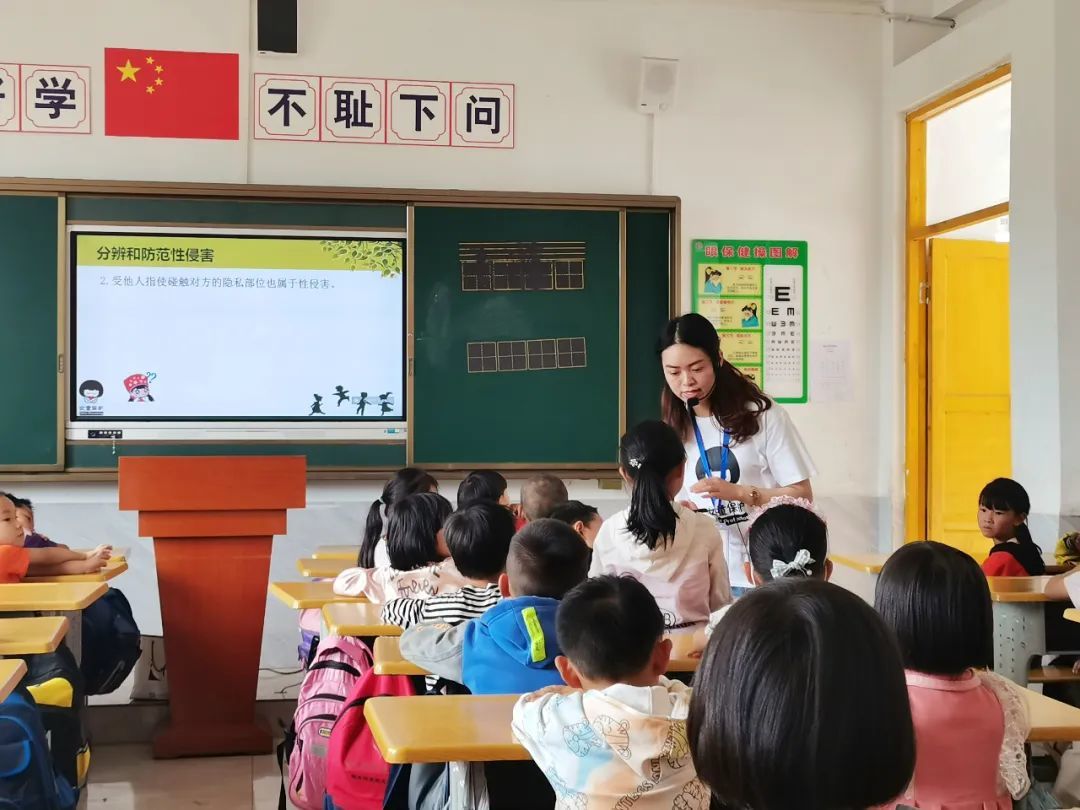 2022年6月10日,女童保护基金四川江安县众禾社会工作服务中心团队走进四川省宜宾市长宁县阳春镇长江学校,志愿者讲师刘晓蓉为52名孩子讲授了1堂“爱护我们的身体”儿童防性侵课程。