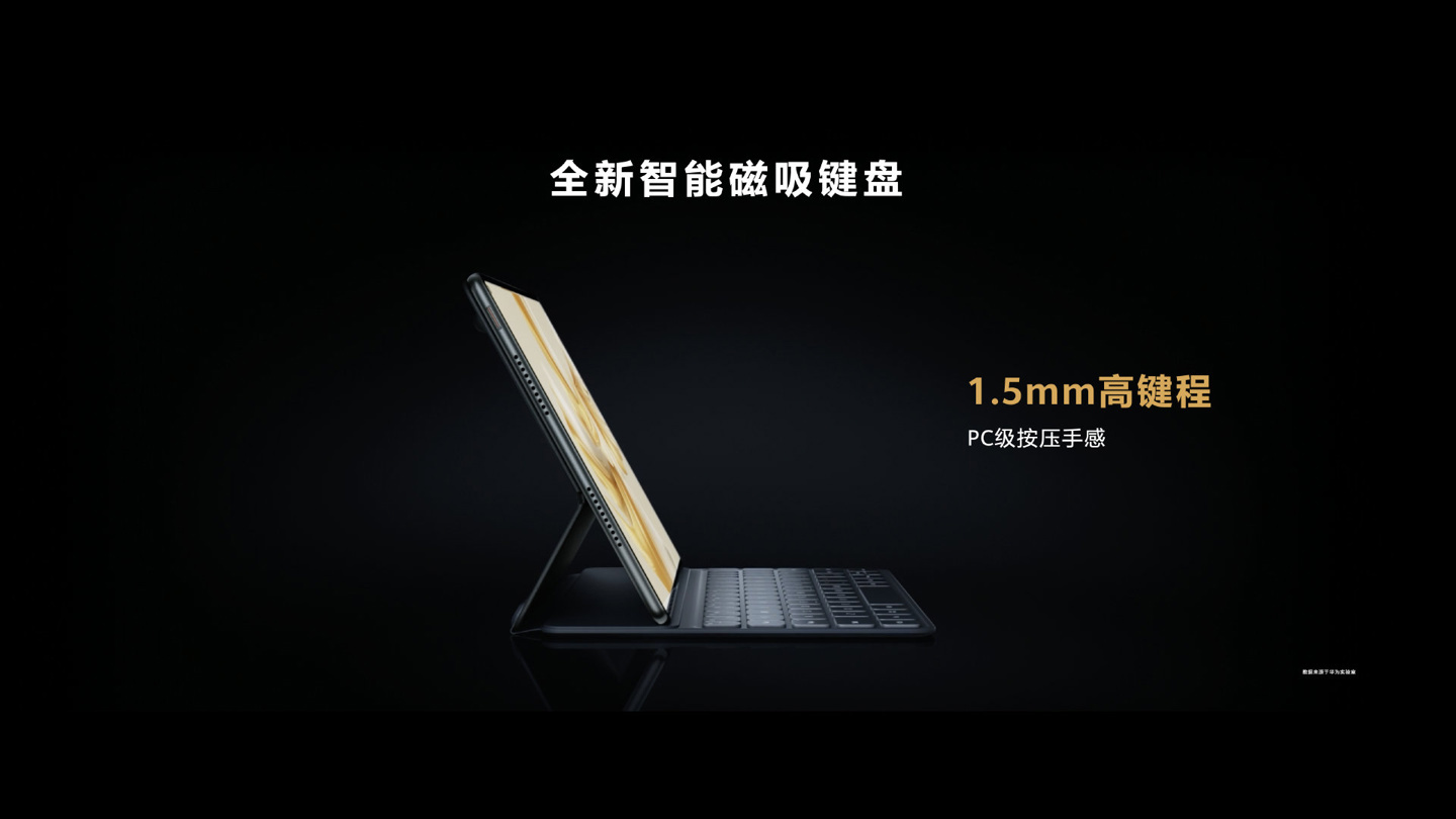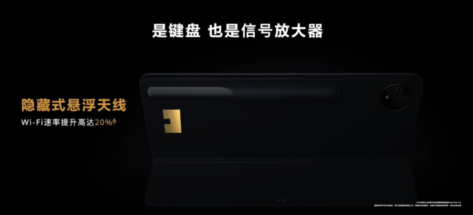 配件方面,华为 MatePad Pro 11 可选分体式智能磁吸键盘,键程 1.5mm,键盘、支架可拆分,支架中也配有隐藏式悬浮 Wi-Fi 天线,可将 Wi-Fi 速率提升达 20%。