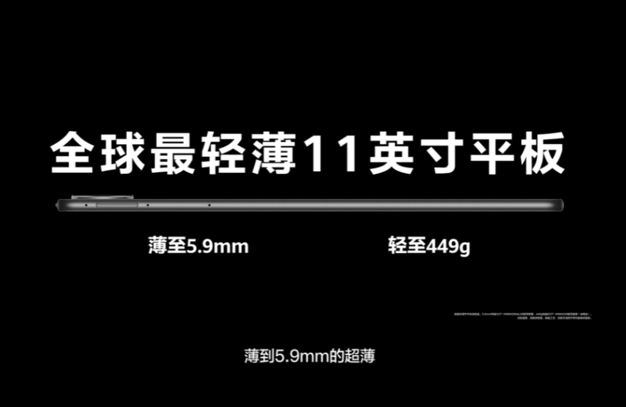 华为 MatePad Pro 11 号称全球最轻薄的 11 英寸平板电脑,轻至 449g,薄至 5.9mm,拥有星河蓝、晶钻白、曜金黑、锦白四款配色,采用了 P50 系列的相似设计。