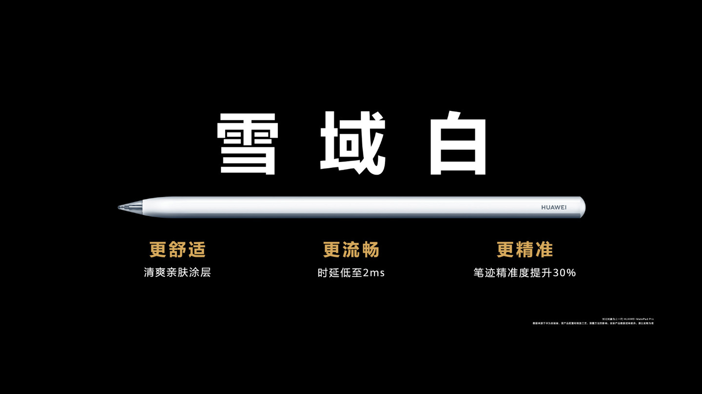 此外,华为 M-Pencil 第二代手写笔也迎来新配色“雪域白”,时延低至 2ms,笔迹精准度提升 30%。