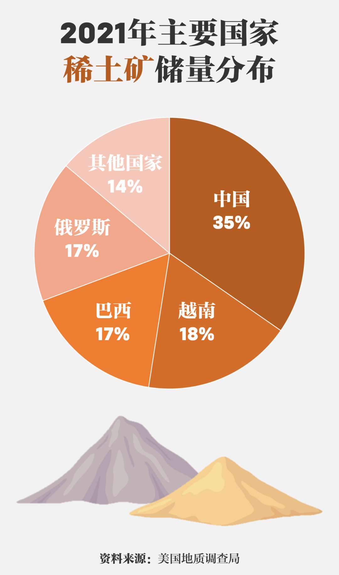 ▲ 2021年主要国家稀土矿储量分布 (资料来源 | 美国地质调查局)