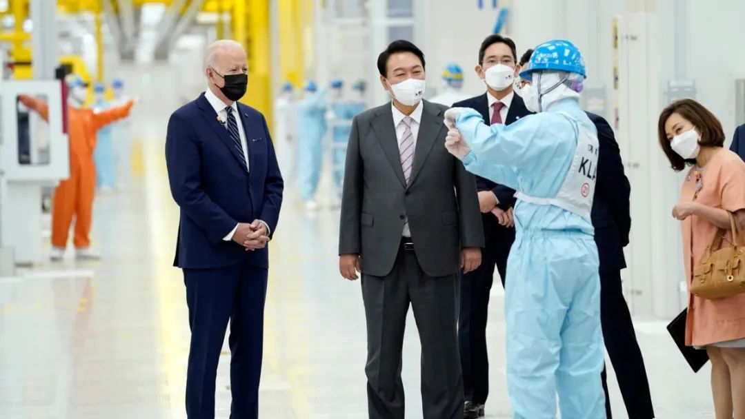 ▲ 2022年5月,拜登访问韩国期间,在韩国总统尹锡悦陪同下参观三星电子半导体工厂。