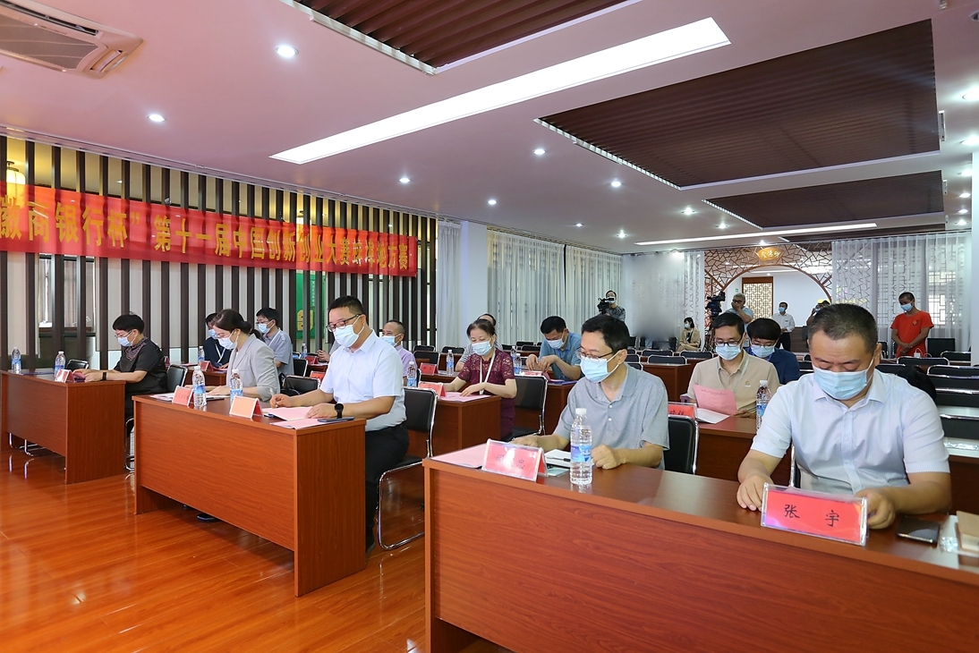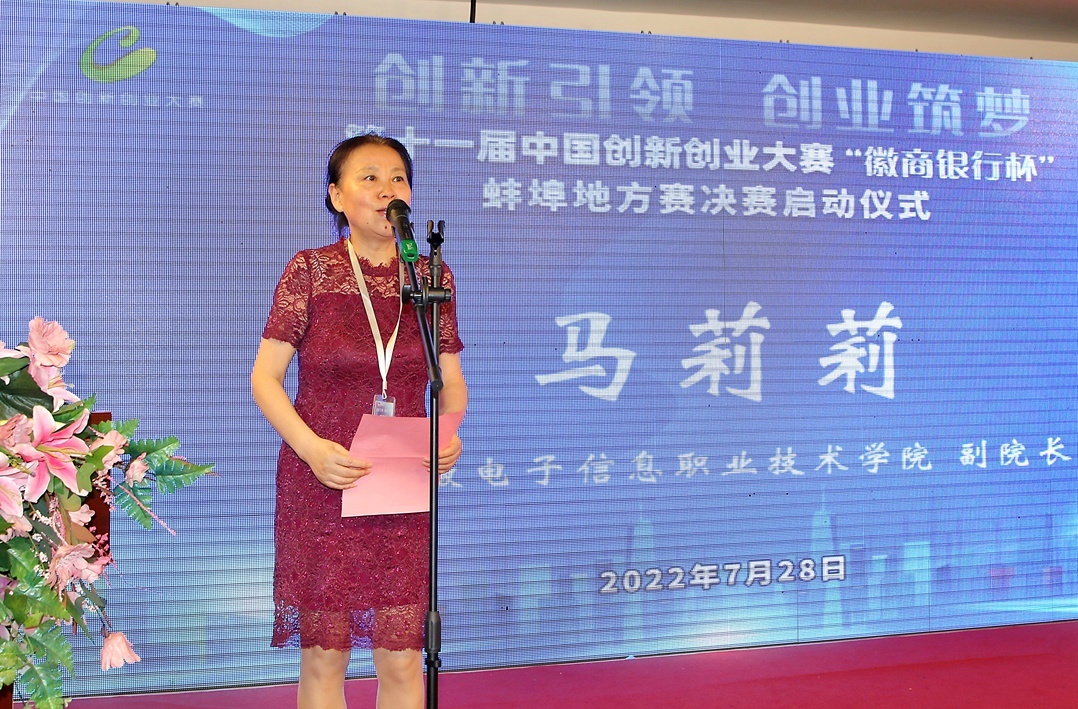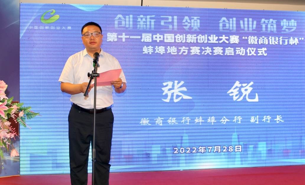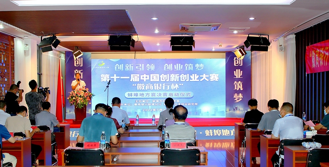 2022年7月28日上午,由蚌埠市科技局主办,徽商银行蚌埠分行、蚌埠市江淮创业研究院承办的第十一届中国创新创业大赛“徽商银行杯” 蚌埠地方赛决赛正式启动,蚌埠市政协副主席、蚌埠市科技局局长乌兰其其格,蚌埠市科技局党委委员、总工程师闻建忠,蚌埠市纪委驻经信局纪检组副组长沈毅,蚌埠市科技局科技成果转化与对外合作科科长柳昂、副科长李帆、副科长郭城,蚌埠市科技局机关党委副书记闫战,徽商银行蚌埠分行党委委员、副行长张锐,徽商银行蚌埠分行小企业银行部总经理张宇,蚌埠市江淮创业研究院董事长方雯、副院长胡宝光出席活动。参会的还有本次决赛的专家评委:安徽电子信息职业技术学院副院长、国赛评委马莉莉,蚌埠学院材料与化学工程学院院长、教授李宗群,安徽科技学院研究生处处长、教授张春雨,蚌埠医学院创新创业学院院长、教授王震寰,蚌埠中城创业投资有限公司高级项目经理朱晓锐。