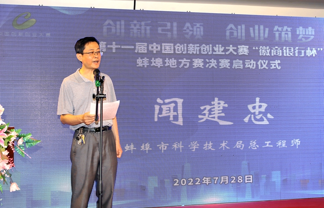 蚌埠市科技局党委委员、总工程师闻建忠致辞。他说到,自中国创新创业大赛蚌埠地方赛举办以来,我市共吸引了500多家企业团队、1000多名创业者报名参赛,成为动员社会各界参与创新创业的重要赛事。希望通过本次创新创业大赛的举办,激发更加强烈的创新创业激情,营造更加优异的创新创业环境,掀起创新发展新高潮,