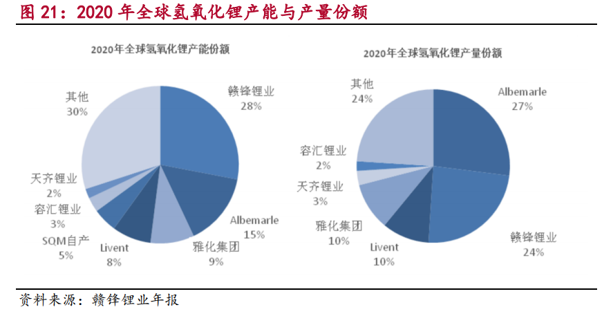 氢氧化锂市场集中度更高,赣锋和ALB基本占据行业半壁江山。