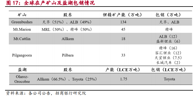 目前放量的西澳矿山所产锂精矿,已全部包销给其股东、其他锂盐企业和汽车厂家。