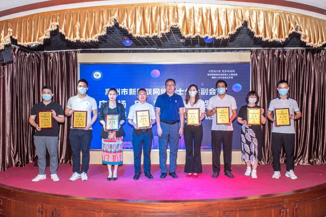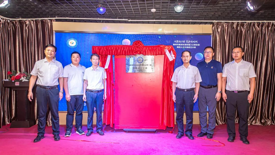 ▲市委统战部、市新阶联领导及网络人士分会会长共同为惠州市新阶联网络人士分会揭牌