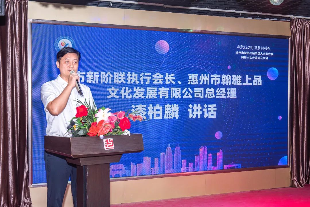 7月27日,惠州市新阶联网络人士分会成立大会召开,市委统战部副部长彭华君、二级调研员林小彰,市新阶联执行会长漆柏麟、监事长尚炜、常务副会长刘汉帆等50余人参加活动。