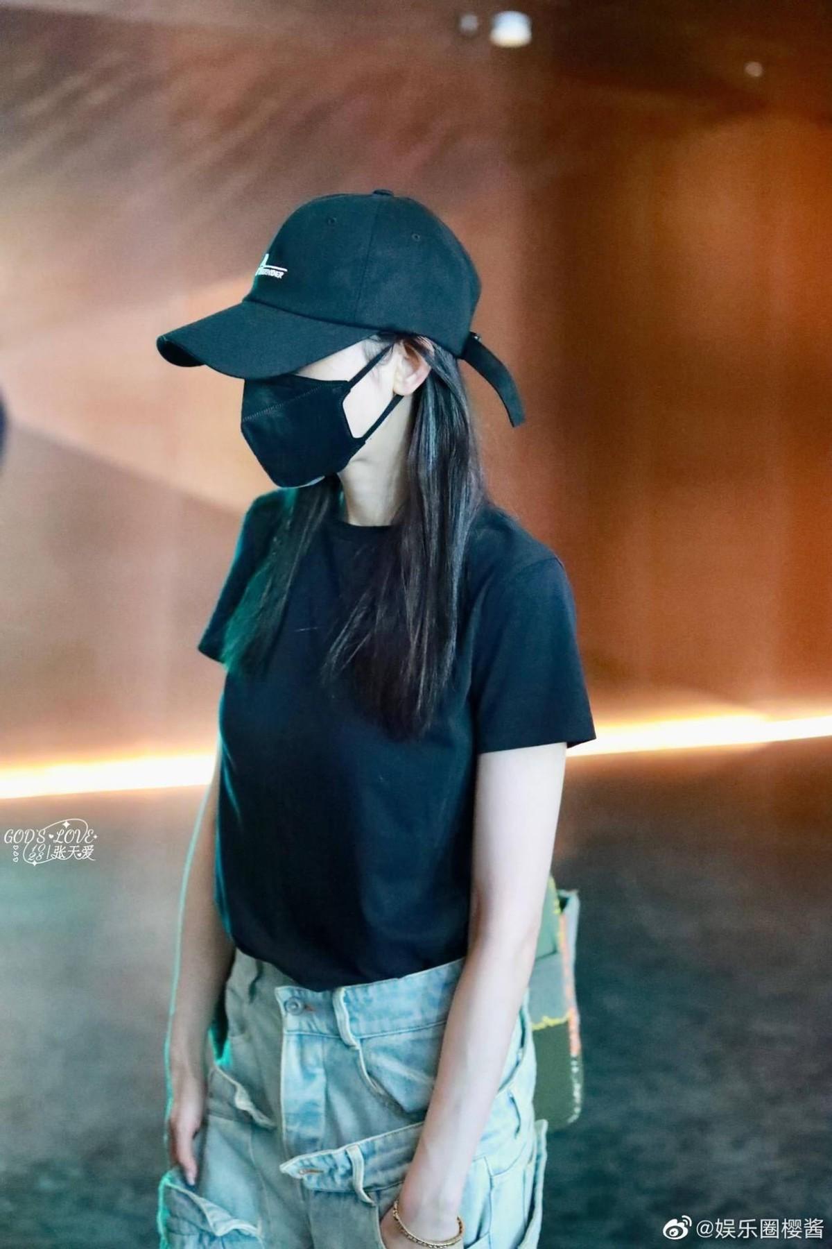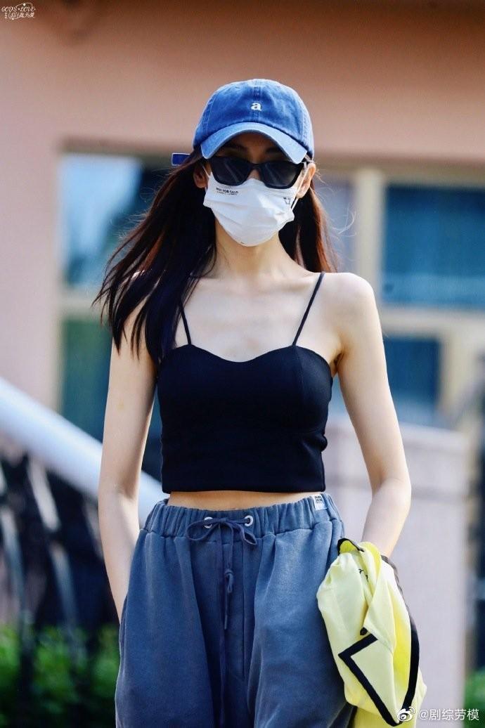 超黑look的抹胸吊带,搭配运动长裤,慵懒又休闲的穿搭风格又酷又辣妹!尤其是本来就是长胳膊长腿比例身材的张天爱,上衣紧身露出身材线条的优美,下衣宽松又多了点freestyle的狂野感!