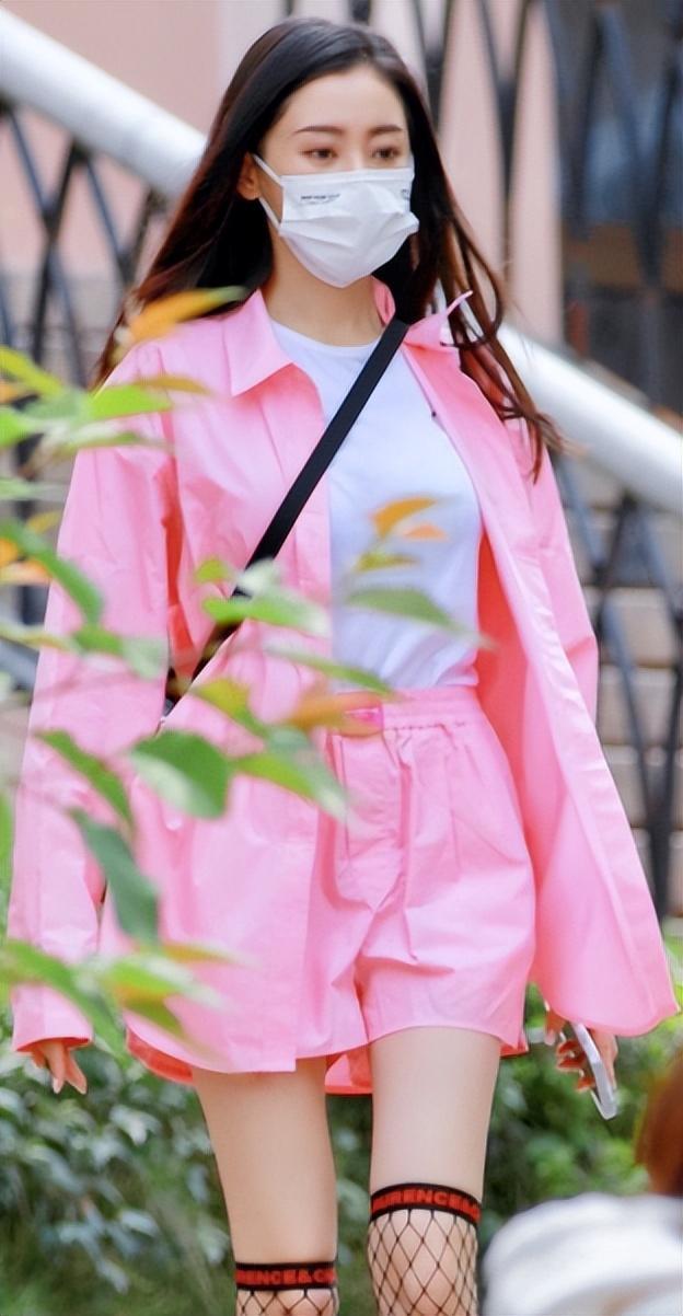 之前还有网友路透过张天爱下班的死亡芭比粉穿搭,别人穿是死亡芭比粉,张天爱穿就成了时尚潮流单品。全粉穿搭,再搭上超级挑人的渔网袜的配置,内搭的白色T恤衬托得张天爱更加白美。
