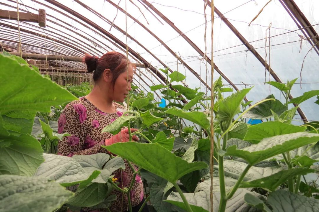 7月26日上午,在水川镇重坪社的蔬菜大棚内,一眼望去处处皆是绿油油的色彩,一筐筐新鲜的黄瓜青翠欲滴,本地菜农高东和家人正忙着采摘、分拣、装筐……