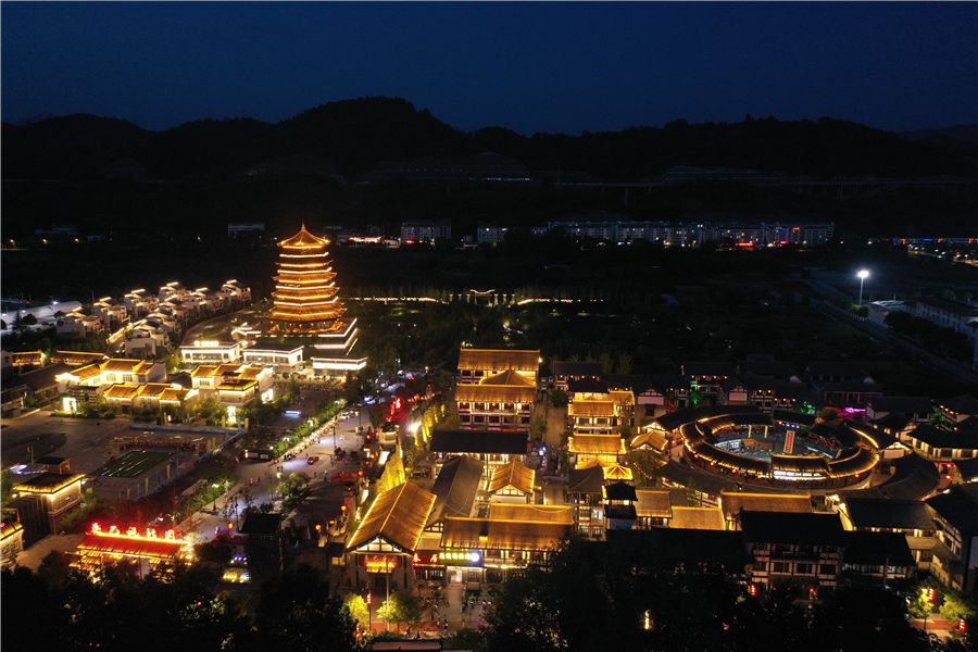 秦巴风情园的夏夜,虫鸣阵阵、凉风习习,秦楼、楚馆、齐坊、魏居四大区域的仿古建筑,在创意十足的灯光秀中参差起伏、光彩夺目,园林观光步道灯火通明,月季花在灯光下更加娇艳,鸭群在藕花深处追逐嬉闹。在美食定点摊位区,烧烤冰粉、水果冰沙等特色美食摊档错落,扑鼻的香味弥漫整个街区。在非遗集市区,文创产品、非遗产品、装饰品、特色农产品、手工艺品等应有尽有,吸引了众多市民及游客前来观赏。圆楼舞台上的歌舞节目精彩纷呈、扣人心弦,赢得阵阵喝彩,别出心裁的泡泡机让孩童们欢呼雀跃……这里成了游客品美食、赏节目、聊家常的打卡地。