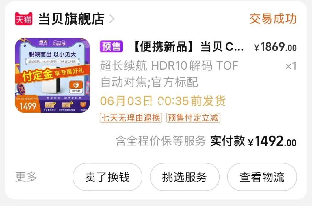 日前,丸子向《消费者报道》表示,她于2021年618期间在当贝天猫旗舰店花费1492元购买了当贝C2投影仪。收到货后,由于工作原因多次搬家,因此一年内使用投影仪的次数屈指可数。直到今年6月,工作、生活稳定下来才经常使用投影仪。