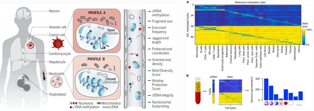 左GM-Seq技术特点;右cfDNA甲基化溯源