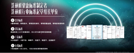 此认证是目前行业内母婴级洗碗机的权威认证,是依据中家院编制的《母婴级洗碗机性能评价技术规范》,把母婴产品评价从感性向理性进行定量化转变调整,从根本上实现了母婴概念产品的考核评价体系,从技术上对市场宣传可以实现更加严格的约束效力,帮助消费者选购到切实有效的母婴级家电产品。可以说母婴级洗碗机除了满足洗碗机洗得干净的本质需求,以及洗消烘存的功能需求,还能实现母婴安心使用的心理需求。