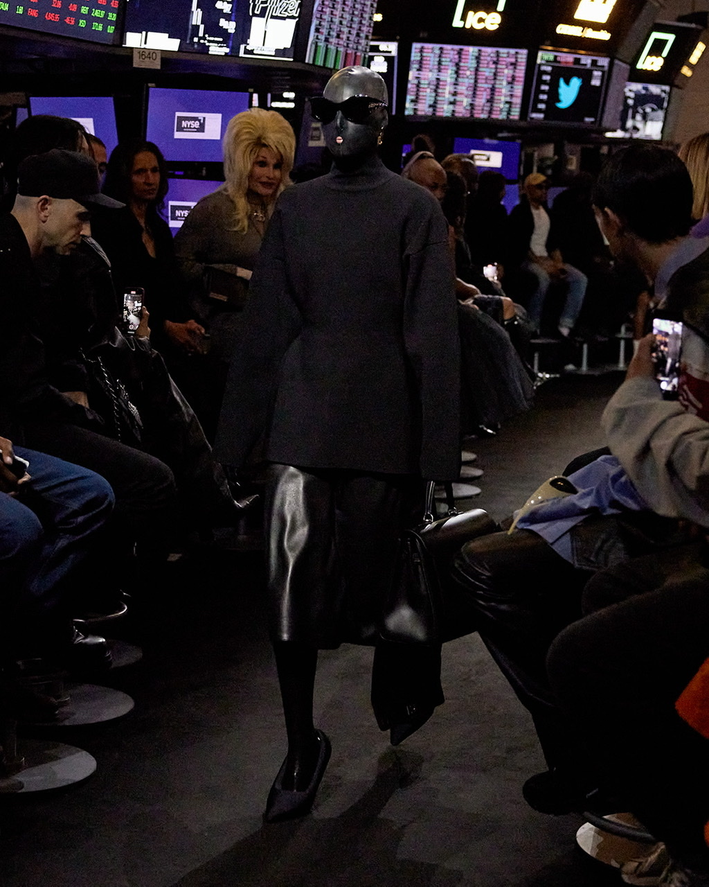 Balenciaga 最新款男女装成衣、鞋履、包袋、配饰、首饰和眼镜系列,被粗犷的单色调 背景衬托出极具冲突感的美学氛围。