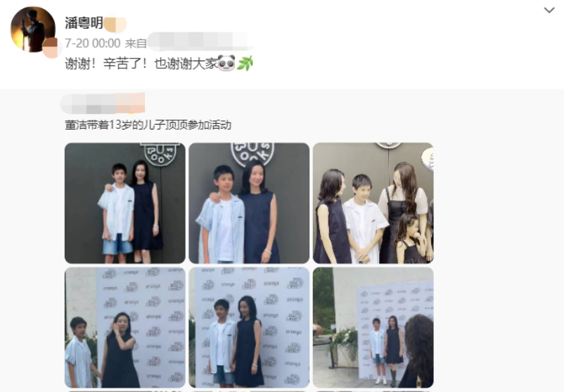 本来大家的关注点都在“顶顶13岁身高已经要接近妈妈了”等等方面,但董洁的前夫潘粤明在凌晨时转发了这组照片,并向工作人员表示感谢,一下引起了许多网友的关注。
