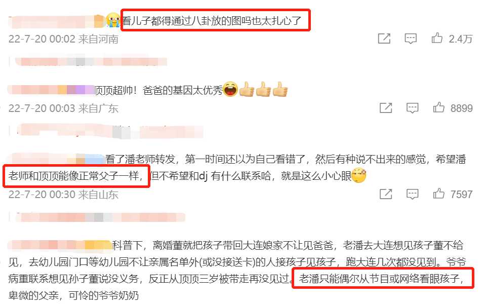 大家纷纷为潘粤明抱不平,称潘粤明看儿子还得从网上看照片,非常扎心。作为一名父亲不能和儿子正常相处,确实有些无力,也难怪网友们心疼潘粤明。