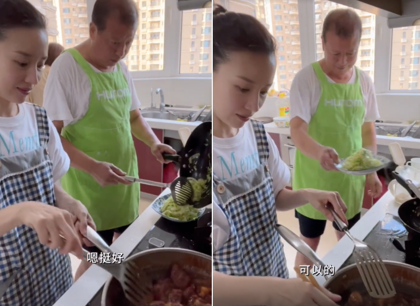 近日,董洁在某社交平台上晒出了一段做菜的视频。除了她自己下厨之外,她的爸爸也大展身手,父女俩做出了一大桌美食。