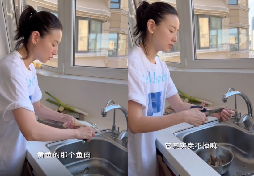 当天董洁素颜出镜,穿着简单的T恤,显得十分简单随性。她所在的地方是大连的家,她的父母也都在,估计是父母所居住的地方。她和她的爸爸当天都选择做鱼,只是做的方式不同。